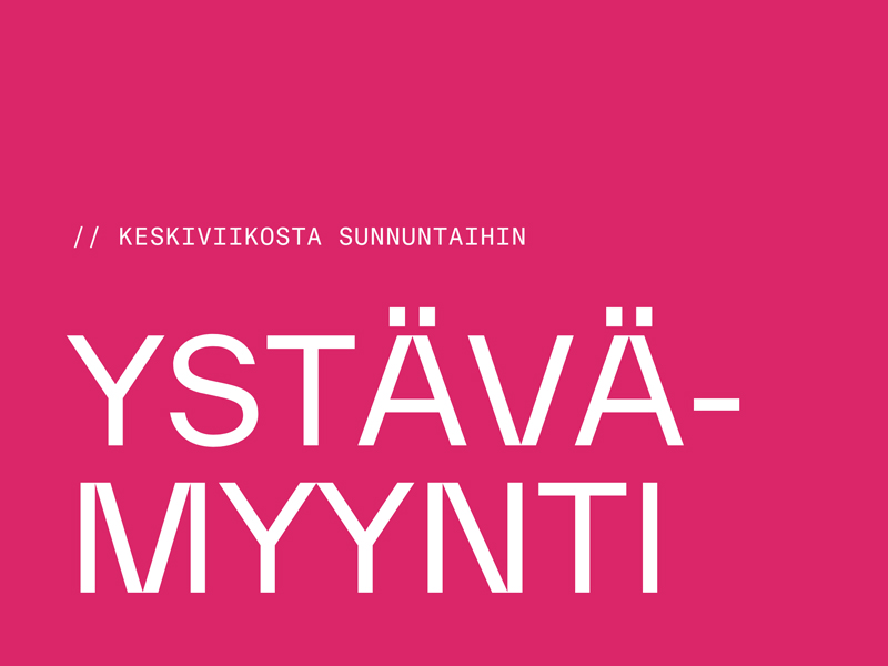 Haltin Ystävämyynti jatkuu uskomattomilla tarjouksilla! Tee ostoksia verkossa tai suuntaa myymälään, mutta älä aikaile – parhaat tarjoukset viedään käsistä.